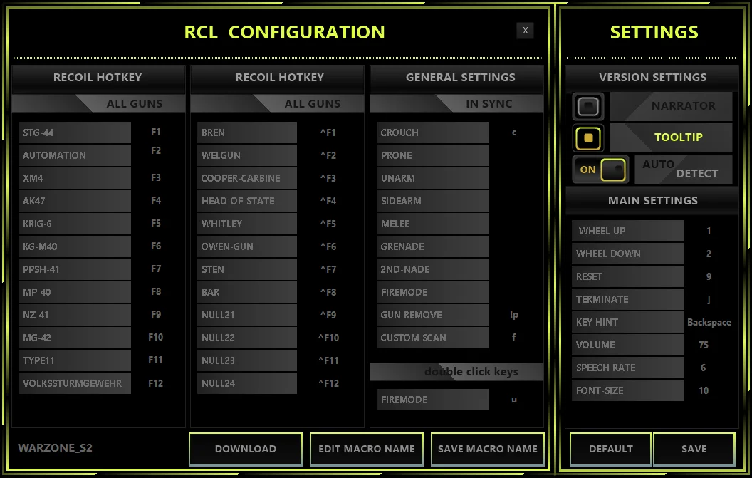 Adjust everything with shortcuts from within the game ; no need to go back and forth between game and Macro user interface